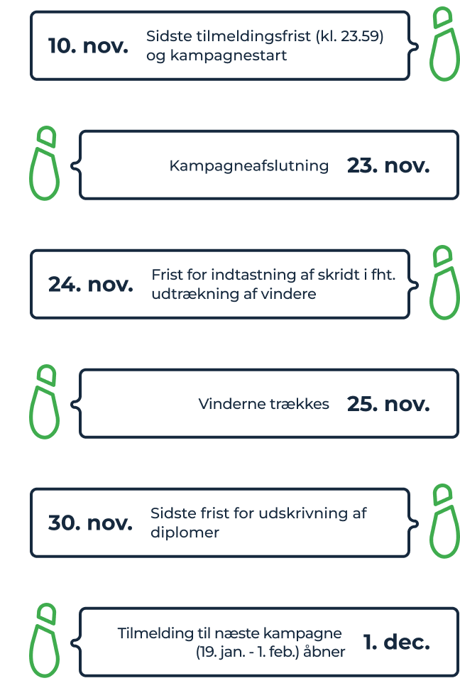I finder ikke en nemmere måde at få hele arbejdspladsen i gang med bevægelse og sunde vaner. Vi tager os af al administrationen, medarbejderne melder sig selv til her på kampagnesitet, og I får kampagnematerialer og gode kampagneværktøjer.